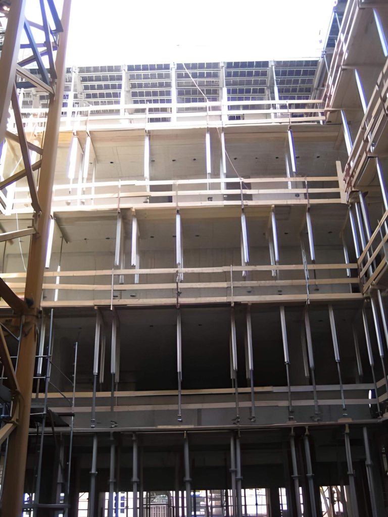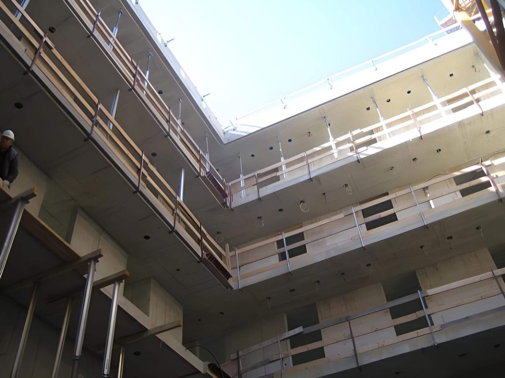 Als besondere Erschwernisse bzw. Herausforderungen sind die hohen logistischen Anforderungen aufgrund der sehr beengten Baustellenverhältnisse im Innenstadtbereich und der enorme Koordinationsaufwand bezüglich der Bauleitung bedingt durch umfangreiche Installationen anderer Gewerke in den Stahlbetonbauteilen zu nennen.