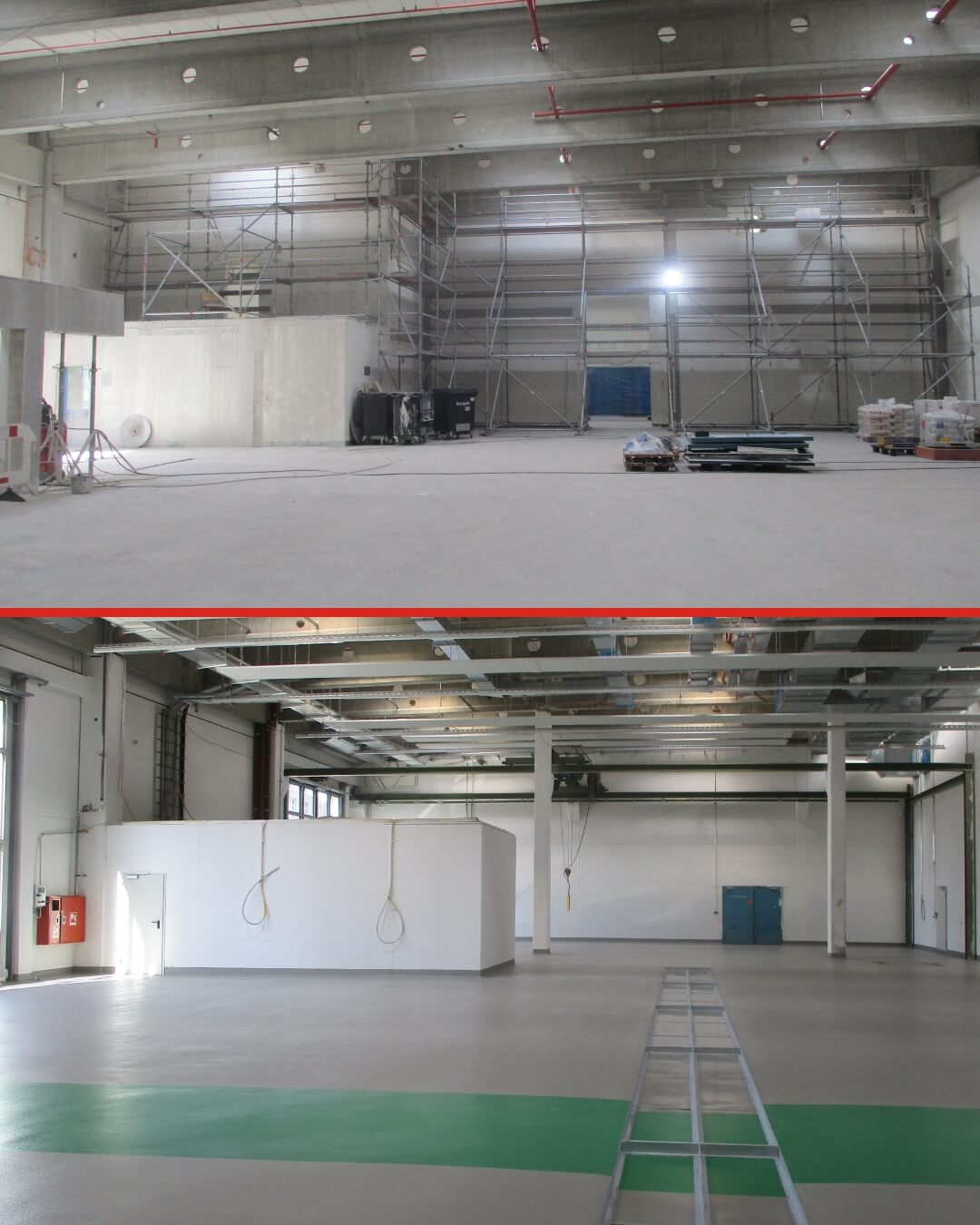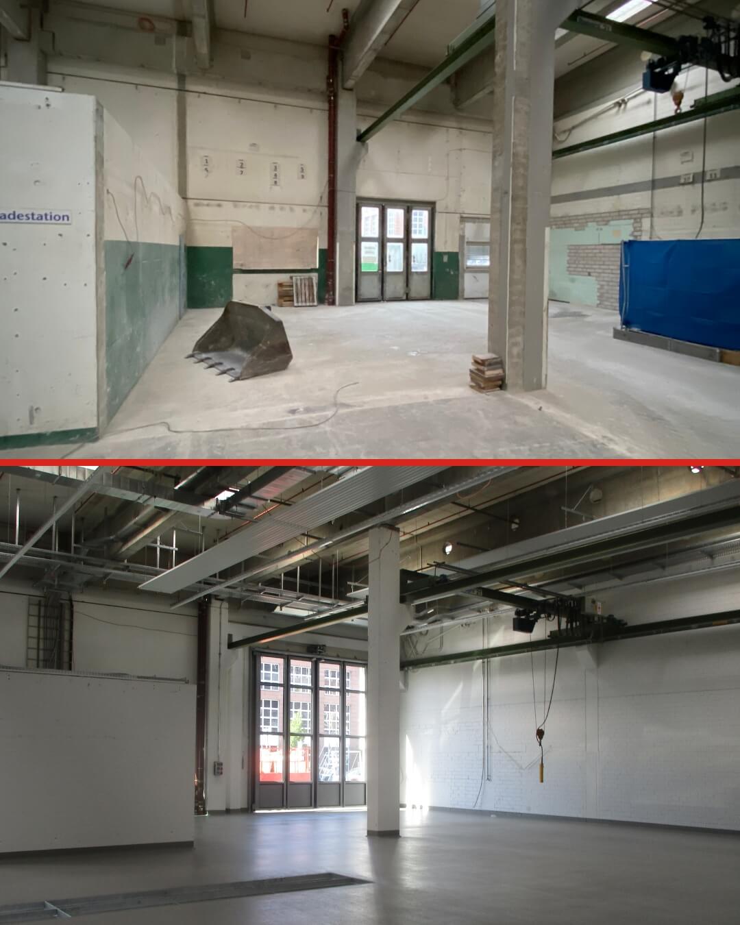 Der Umbau des alten Lagers zur modernen Werkstatt ist abgeschlossen! Die Halle ist nun vollständig saniert und erstrahlt in neuem Glanz. Bevor die Werkstatt jedoch uneingeschränkt in Betrieb genommen werden kann, steht zuvor noch ein letzter Schritt an: Die bestehende Pflasterfläche vor der Halle muss abgebrochen und anschließend durch eine neue Betonfläche ersetzt werden.