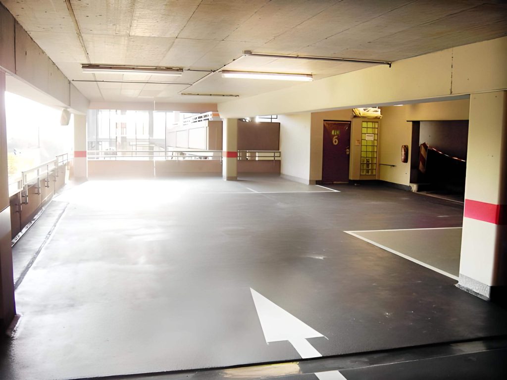 • Herstellen eines verschiedenfarbigen Oberflächenschutzsystems OS 8 auf den Bodenflächen des Parkhauses