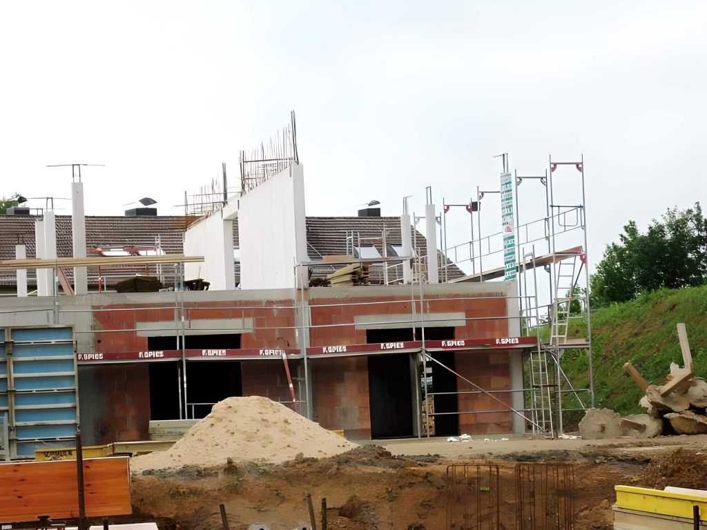 Im Zuge des Neubaus eines Pflegeheims für die Arbeiterwohlfahrt e.V. in Niederwerrn war SCHMÜCK für sämtliche Erd-, Kanalisations-, Stahlbeton- sowie Mauerwerksarbeiten verantwortlich. Es handelte sich hierbei um einen klassischen Massivbau, bestehend aus Mauerwerks- und Stahlbetonwänden wie auch Stahlbetonstützen. Die Decken wurden hierbei als Stahlbeton-Halbfertigteil mit Aufbeton sowie, sofern notwendig, vollständig in Ortbeton hergestellt. Die Teilunterkellerung des Gebäudes, in der später der Hackschnitzelbunker im Rahmen des Ausbaus angeordnet wurde, ist ebenfalls in Stahlbeton ausgeführt worden. Darüber hinaus wurde das Dachgeschoss aus statischen Gründen in Holzständerbauweise ausgeführt, wobei lediglich Aussteifungs- bzw. Brandschutzwände in Massivbauweise errichtet wurden.