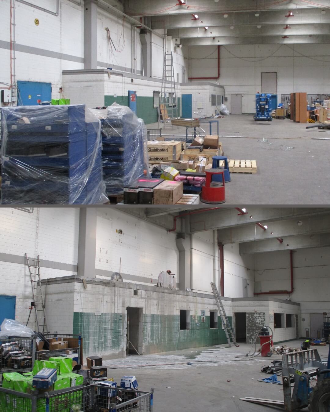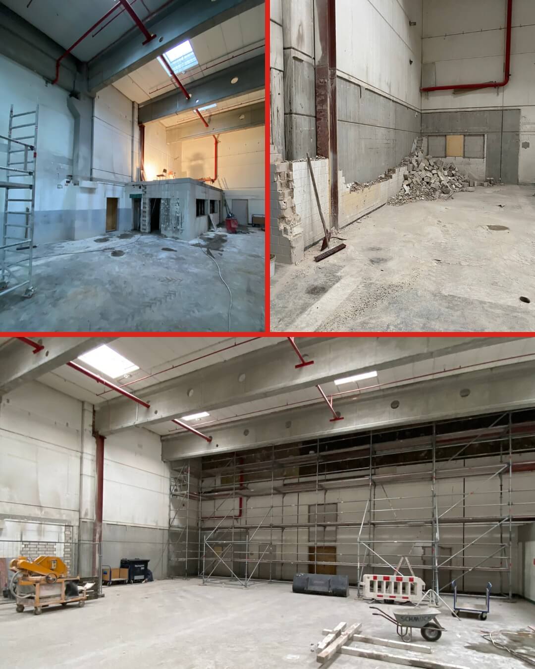 Hier fliegen ordentlich die Funken! Denn bevor aus diesem ehemaligen Lager eine neue, moderne Werkstatt werden kann, mussten – wie die Bilder zeigen – einige Abbrucharbeiten durchgeführt werden. Jetzt ist Platz für Neues und wir halten euch natürlich auf dem Laufenden, wie es weitergeht!